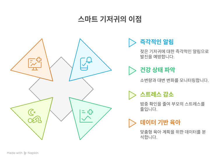 단순히 아기의 배설물을 흡수하는 기능을 넘어, 첨단 센서와 인공지능 기술을 접목하여 아기의 배변 습관, 수분 섭취량, 심지어는 건강 이상 징후까지 분석하여 부모에게 유용한 정보를 제공하는 스마트한 육아템으로 주목받고 있습니다. 이 글에서는 AI 스마트 기저귀가 어떻게 우리 아이의 건강을 책임지는지, 그리고 실제 사용 후기를 통해 그 장단점을 꼼꼼히 살펴보겠습니다.