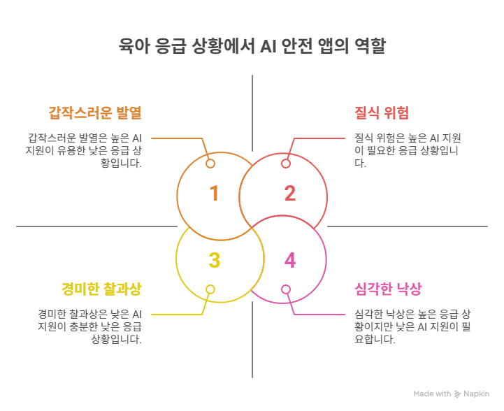 - 이 앱들은 비록 AI 안전 앱으로 분류되지는 않지만, 육아맘에게는 필수적인 응급 상황 대비 앱으로 활용될 수 있습니다.