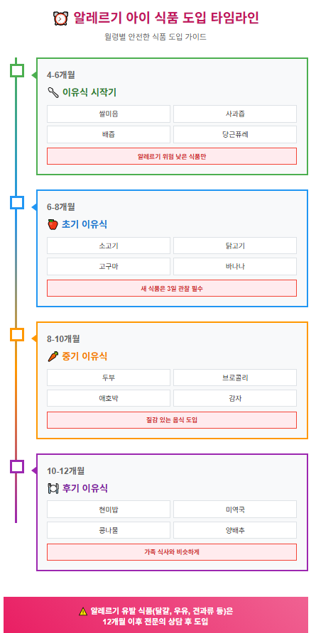 알레르기 유발 식품을 제외한 다른 새로운 식품을 이유식에 도입할 때는 매우 신중한 '단계별 접근'이 필요합니다.