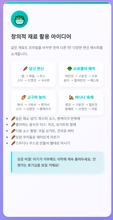 또한, 같은 재료라도 조리 방법을 다양하게 변화시켜 아이가 지루함을 느끼지 않도록 하는 것도 중요합니다.