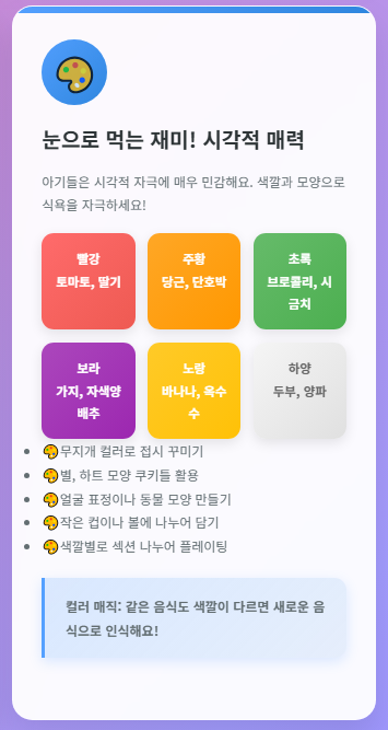 무엇보다 식사 시간을 놀이처럼 즐거운 경험으로 만들어주는 것이 중요합니다.
