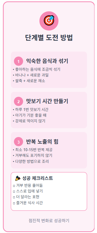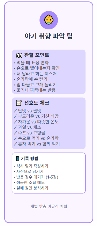마지막으로 꼭 기억해야 할 점은, 편식은 단순한 ‘고쳐야 할 버릇’이 아니라 ‘자연스러운 발달 과정’이라는 사실입니다. 아기는 성장하면서 본능적으로 익숙한 맛을 선호하고, 새로운 맛에는 경계를 갖습니다. 이건 생존 본능에서 비롯된 현상으로, 대부분의 아이가 겪는 과정입니다.